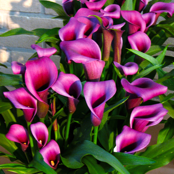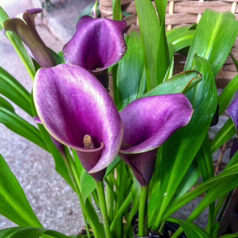 Калла Пако – изысканный и необычный садовый сорт давно привлекает цветоводов. Их культура интересует за счет роскошных крупных бутонов, в которых поражает насыщенный сиреневый оттенок, местами переходящий в синий тон. При этом цветки практически не имеют запаха, что делает их идеальным решением для аллергиков. Диаметр бутонов варьируется от 6 до 8 см. Высота самой культуры с красивыми восковыми листьями составляет 50-60 см.